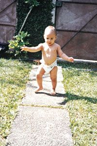 El niño está aprendiendo a andar sin la ayuda de otra persona. ¡Ésta es una gran conquista!